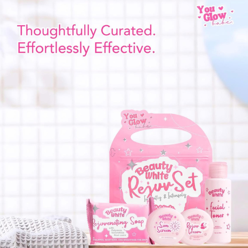 Reveal your most radiant skin with the You Glow Babe Beauty White Rejuvenating Set, a complete skincare system crafted to brighten, smooth, and renew your complexion. This set works to fade dark spots, acne marks, and uneven tone while minimizing the appearance of pores. Powered by Sea Buckthorn and Polymnia Sonchifolia Root Juice, it deeply nourishes and revitalizes your skin for a luminous, healthy glow. Each product in the set is formulated to gently exfoliate, remove impurities, and support skin regeneration. With regular use, it helps prevent breakouts, refine texture, and maintain balanced hydration. The result is clearer, softer, and more even-looking skin that feels refreshed and renewed. Experience confidence in every glow with the You Glow Babe Beauty White Rejuvenating Set.