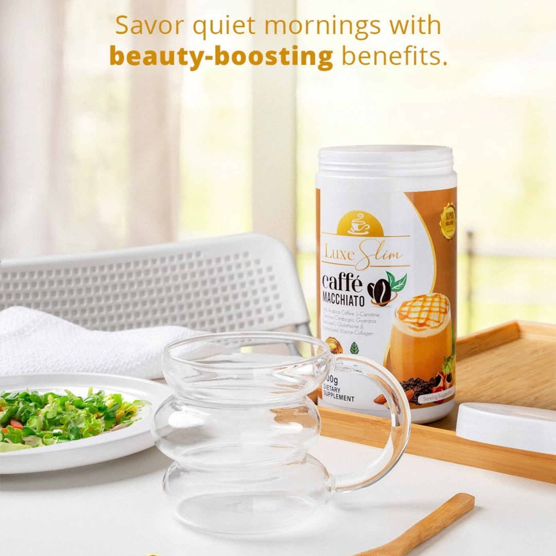Luxe Slim Caffe Macchiato is the perfect coffee blend for those who want to slim down and whiten their skin. Infused with hydrolyzed marine collagen, L-Glutathione, and slimming actives, this non-acidic coffee offers a range of benefits, from reducing appetite to burning fat and improving digestion.